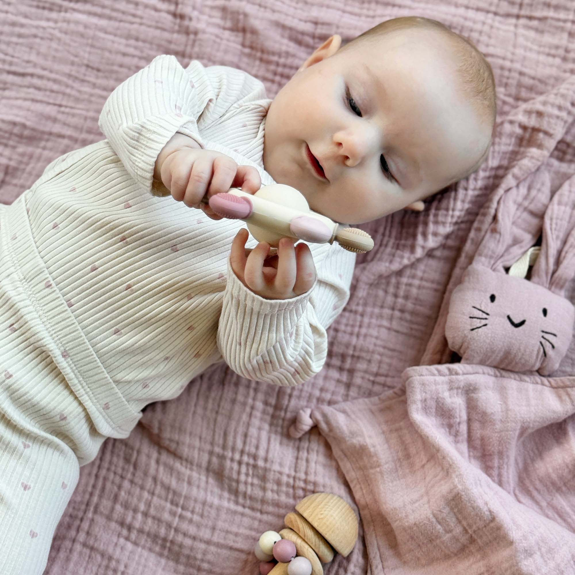 Hållbara leksaker för de minsta barnen i trä och silikon