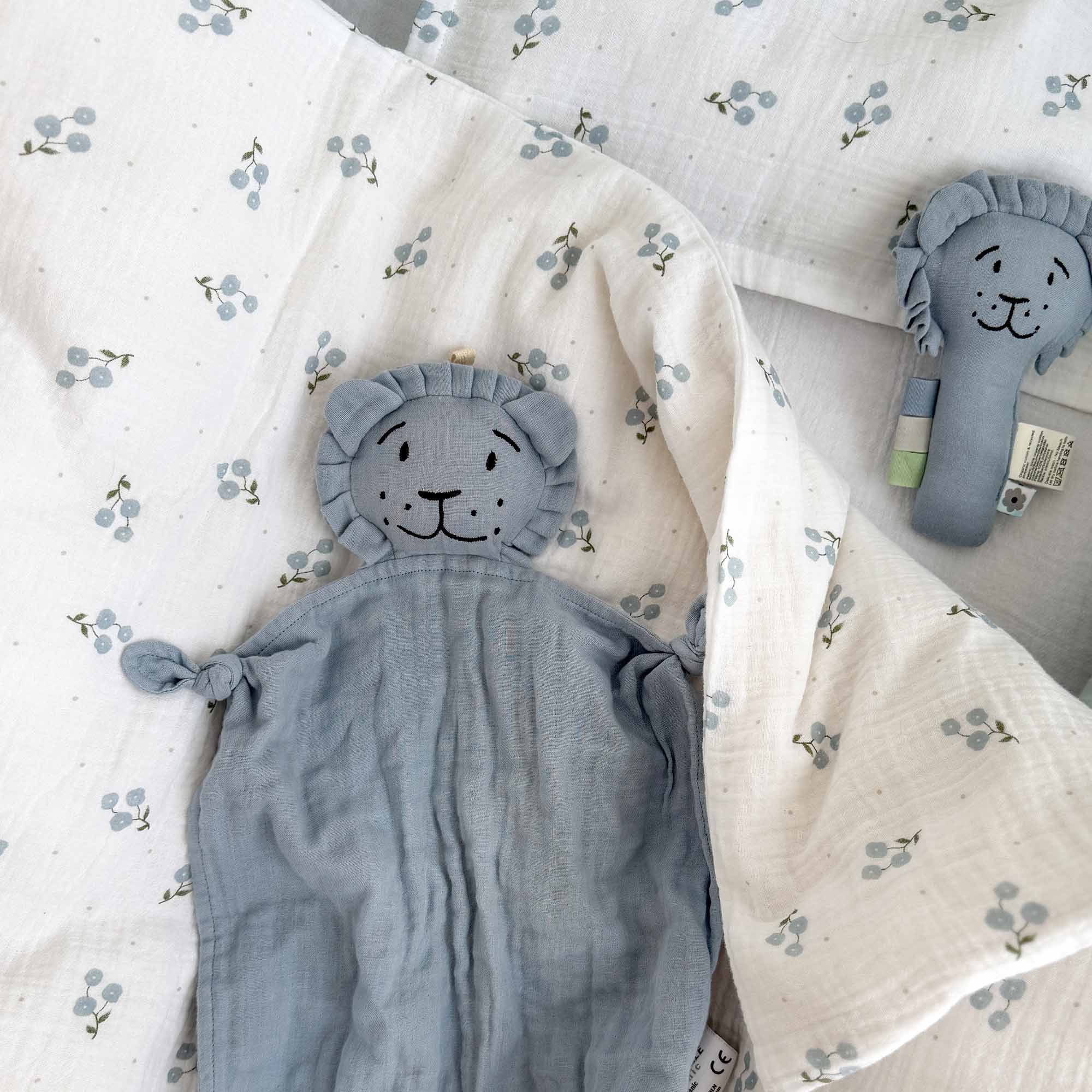 The material is very easy to care for—no ironing needed. Cotton muslin is soft and gentle against your child’s sensitive skin. Machine washable at 40°C without losing its shape or quality.