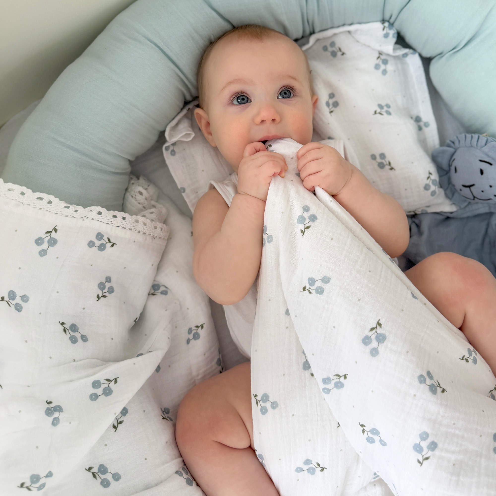 Create a non-toxic, ecological sleeping environment for the baby. The bedding set, sheets and baby blankets from Summerville Organic are made of 100% organic cotton. Our products are certified by GOTS all the way from the organic cotton cultivation, via dyeing and production to the finished end products. Truly organic!