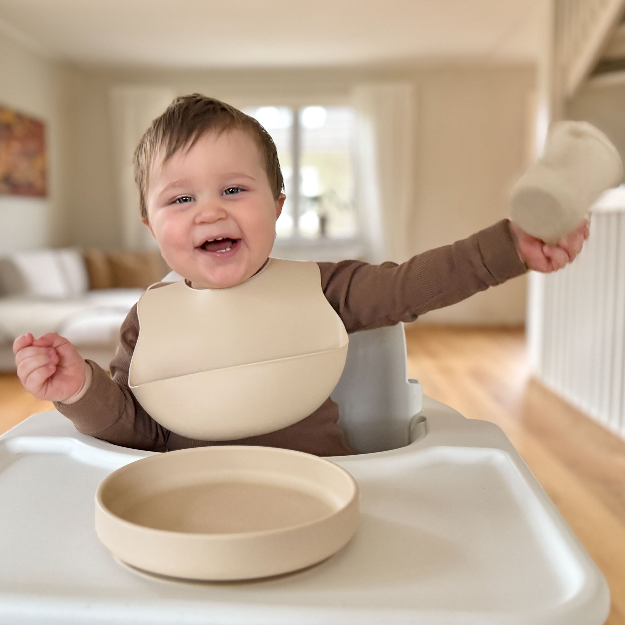 Haklapp i silikon som är mjuk och bekväm för barnet att bära. Haklappen har en rejäl uppsamlingsficka som tar hand om spillet och skyddar kläderna. Storleken kan justeras för att alltid sitta bra på barnet.