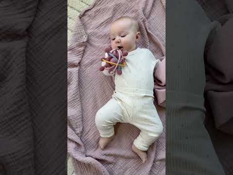 Lek och lär-leksak för babyn i greppvänlig, genomtänkt form och i mjuka fina färger.